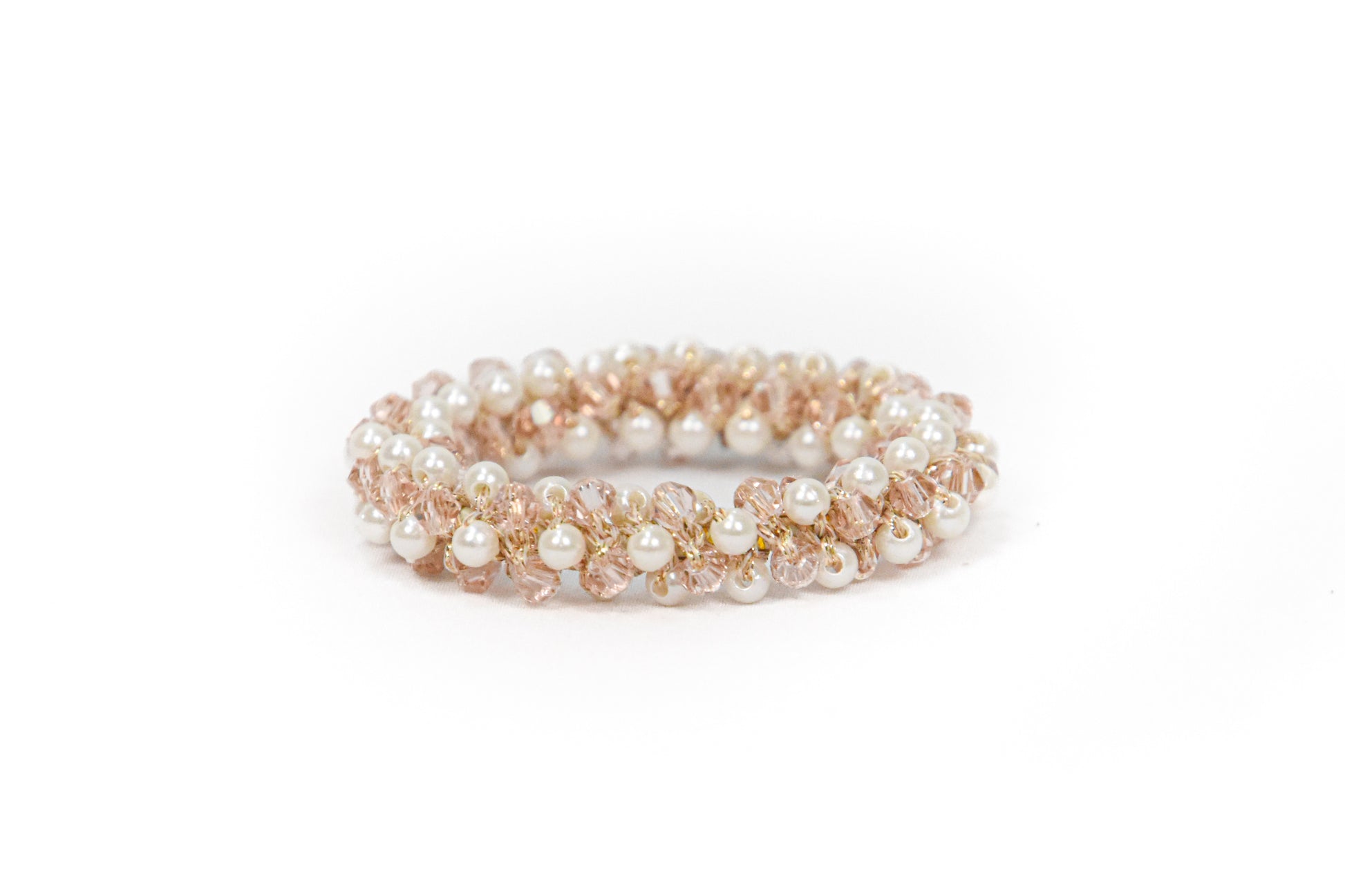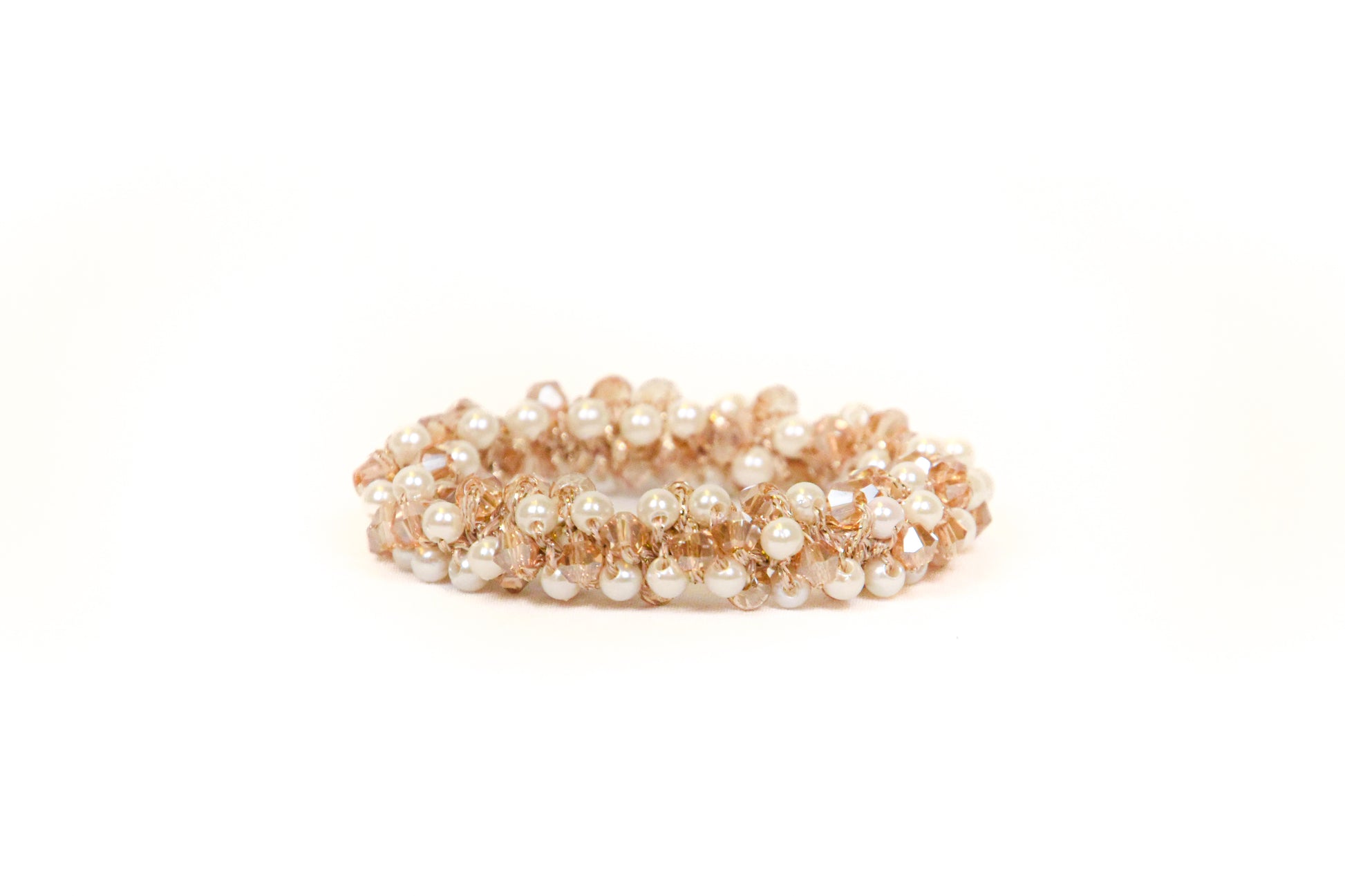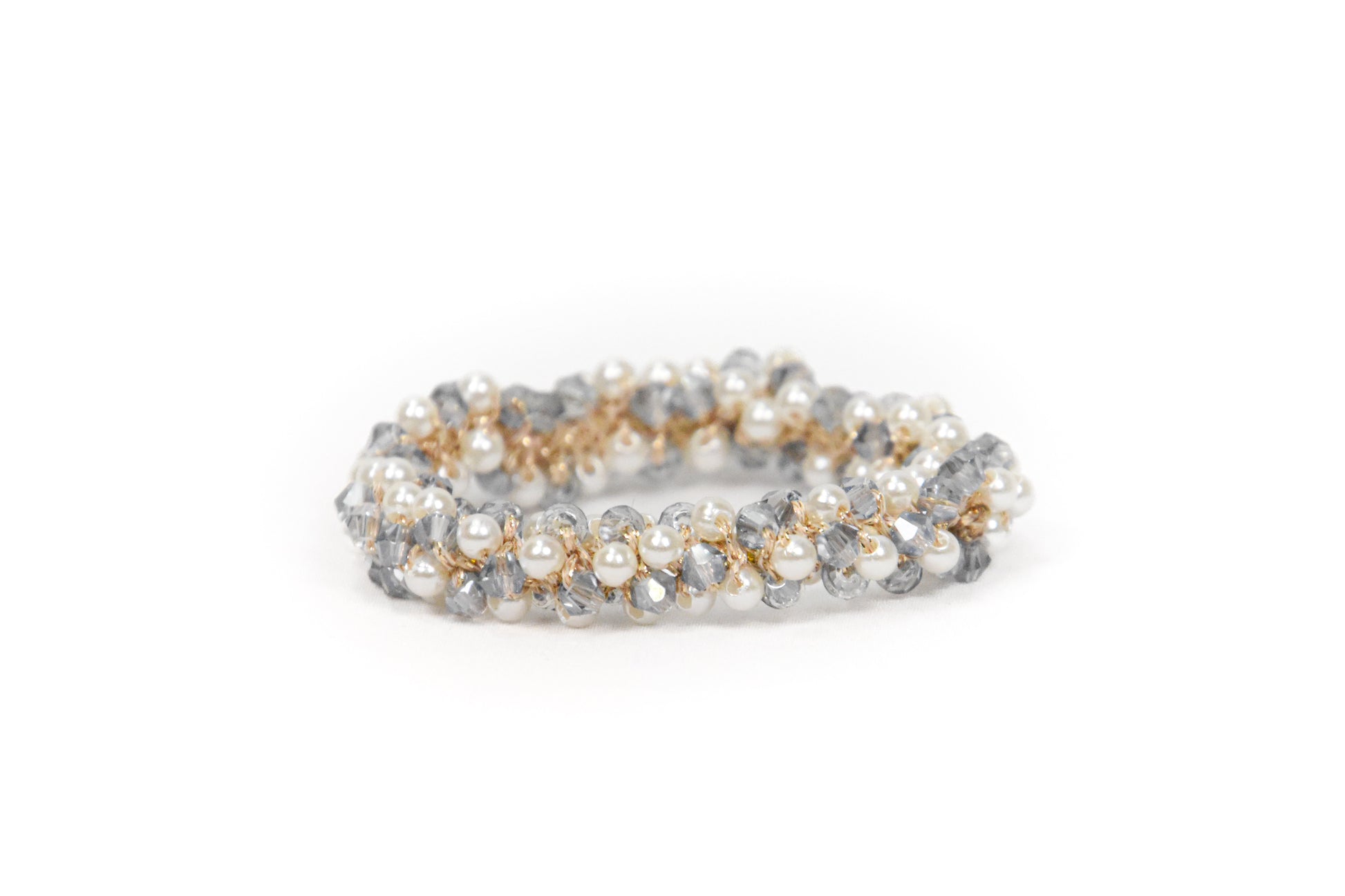 Starlight hårpynten består af et let strækbart elastik, hvor der med glimtrende tråde er påsat imitationsperler- og krystaller.